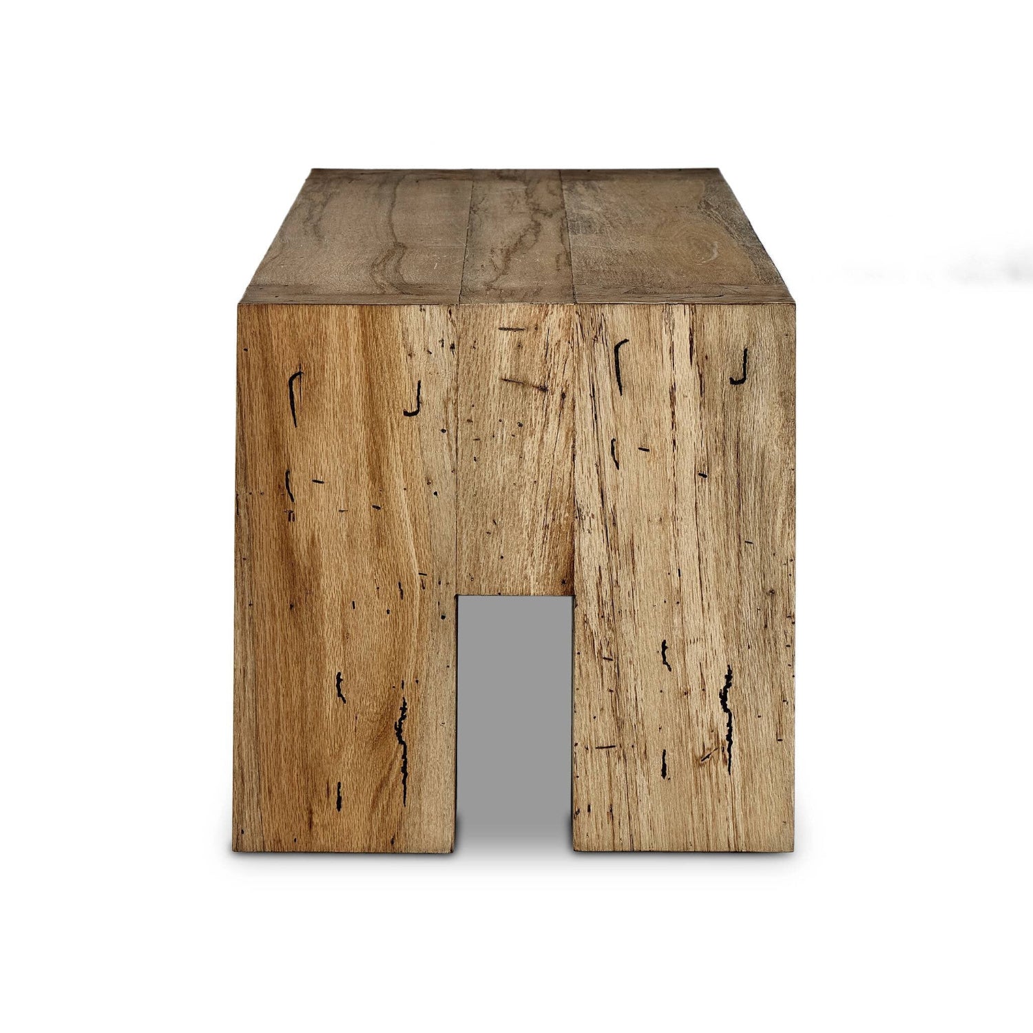 Made from thick-cut oak veneer with a faux rustic finish made to emulate wormwood, with clean Parsons lines, chunky squared legs and dovetail joinery detailing.