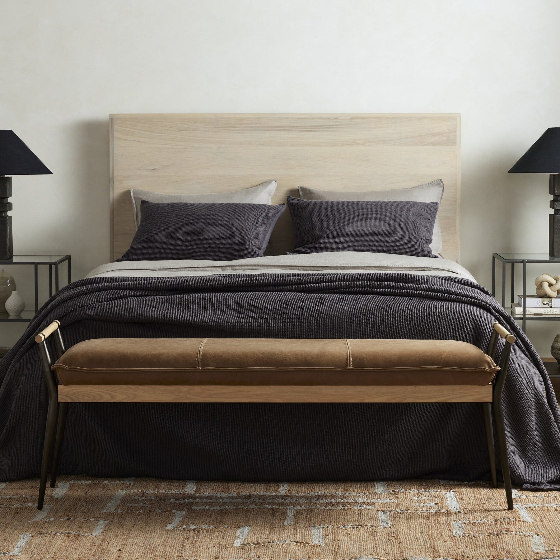 Smart in shape and style. A slim-profile bench inspired by midcentury design is ideal in an entryway, living area or at the foot of the bed.