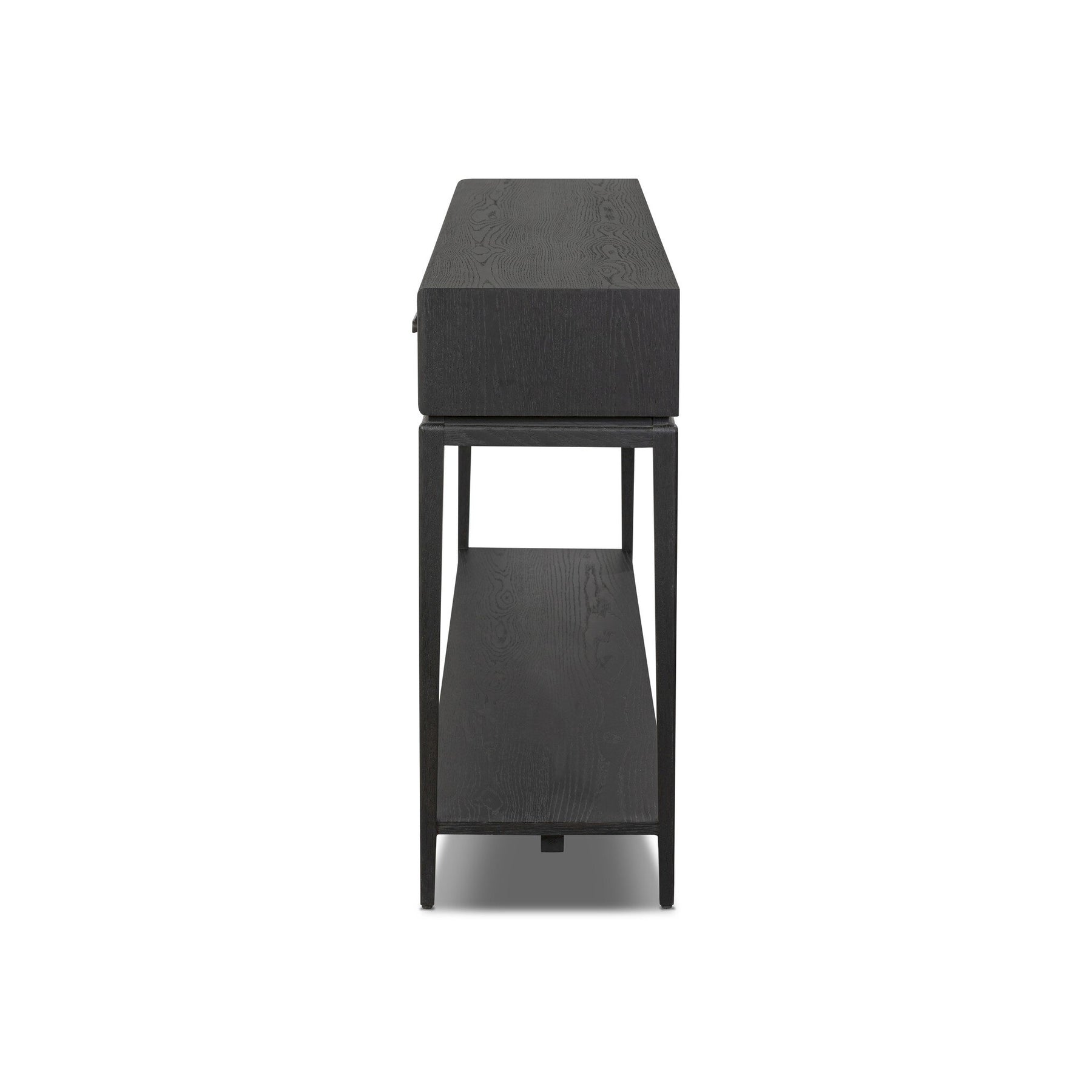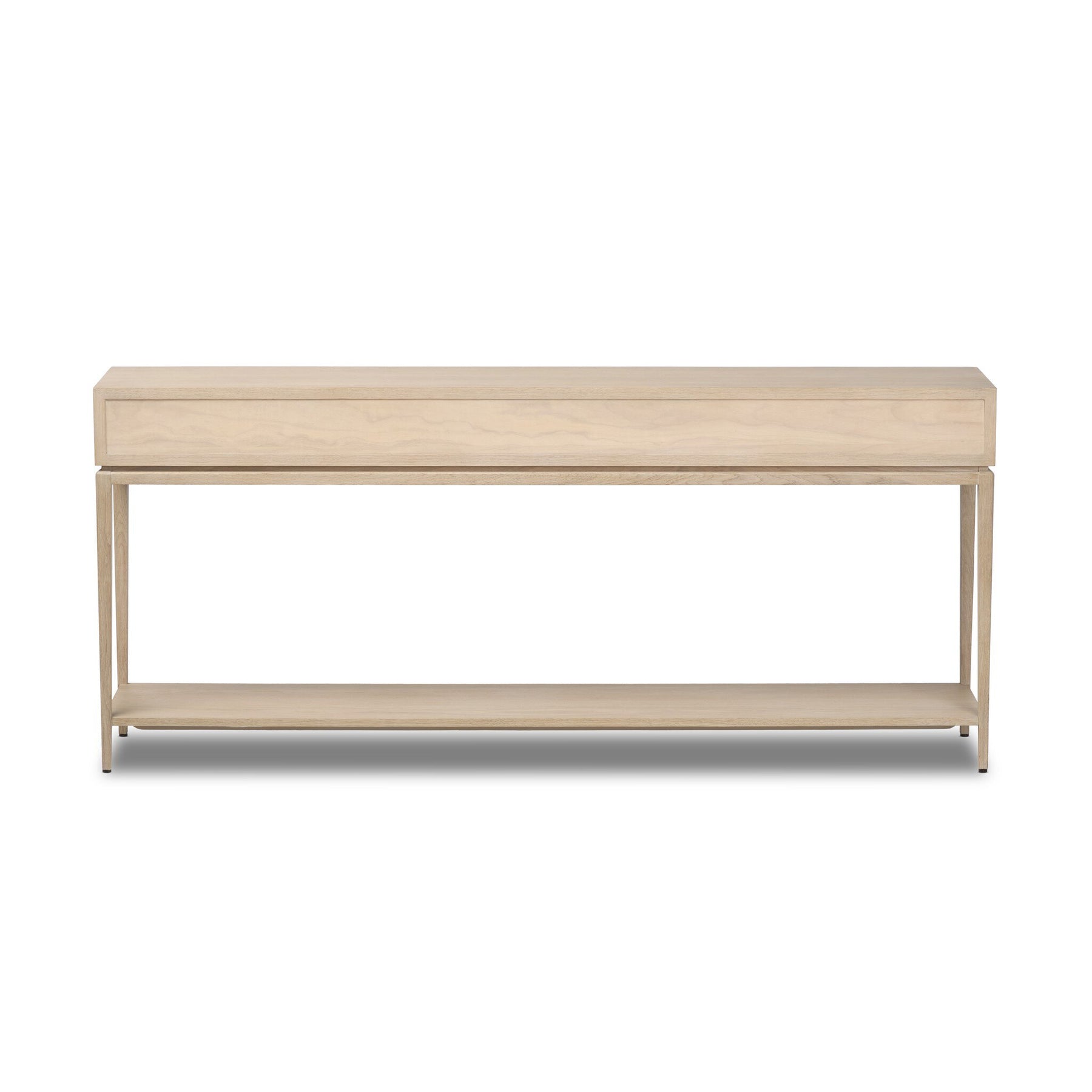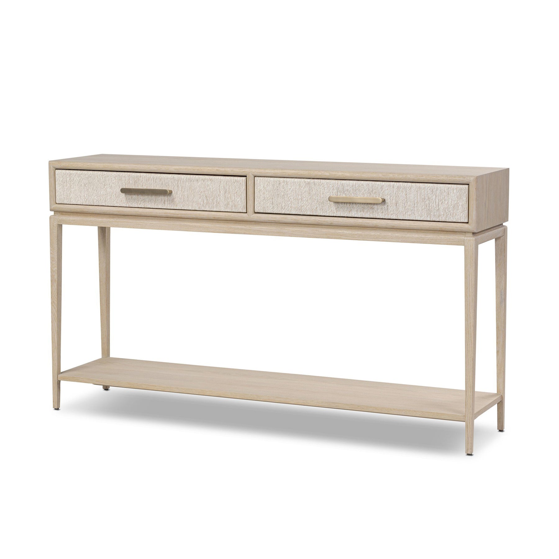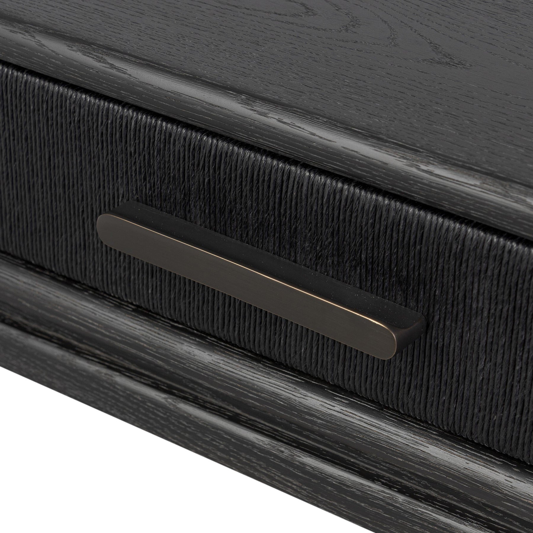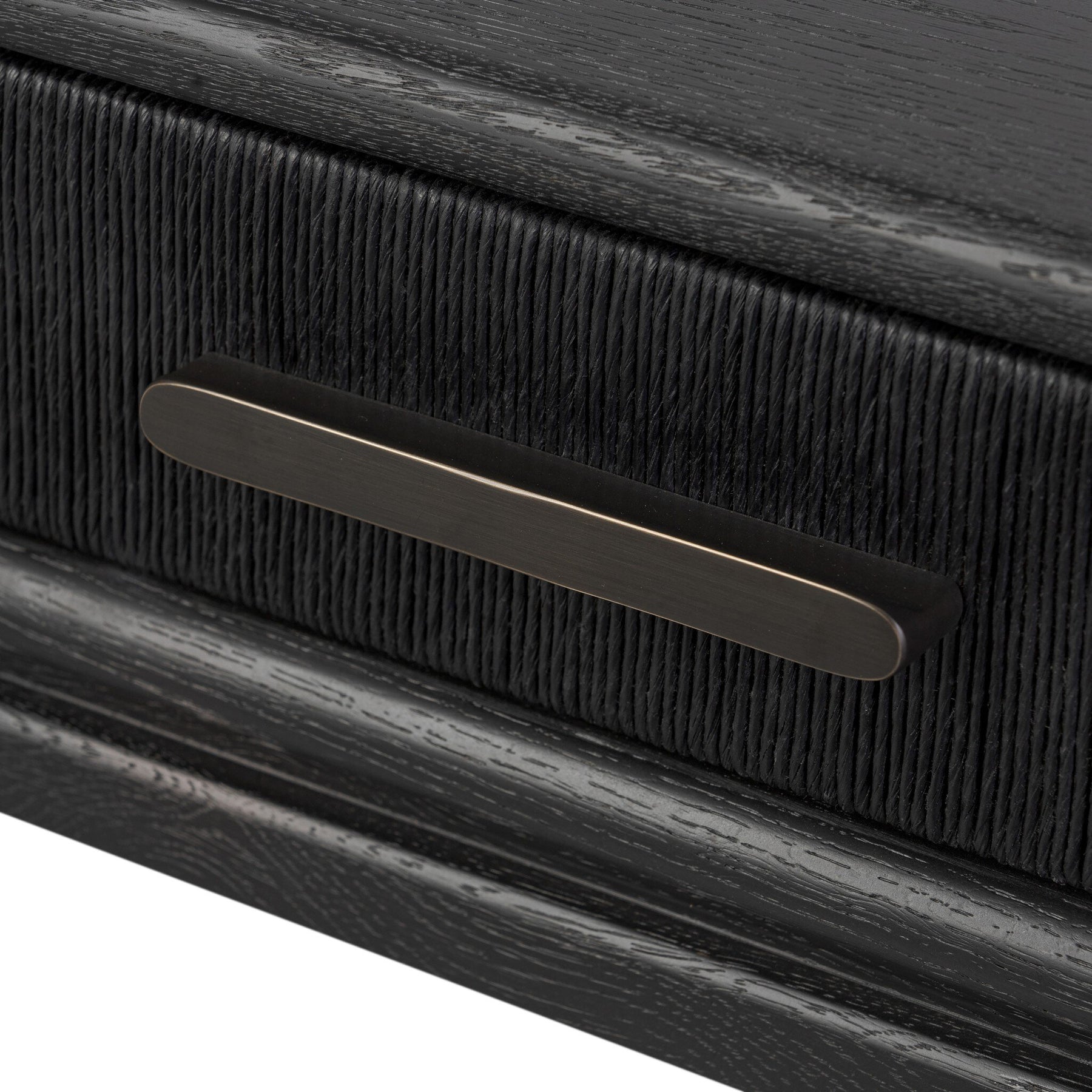 Elevate your living space or media room with a slim-profile console of oak. A smooth top pairs with drawers covered with woven paper cord, while lower open shelving creates bonus storage and display options. The result: a clean, Scandinavian-inspired look that will work into your collection beautifully.