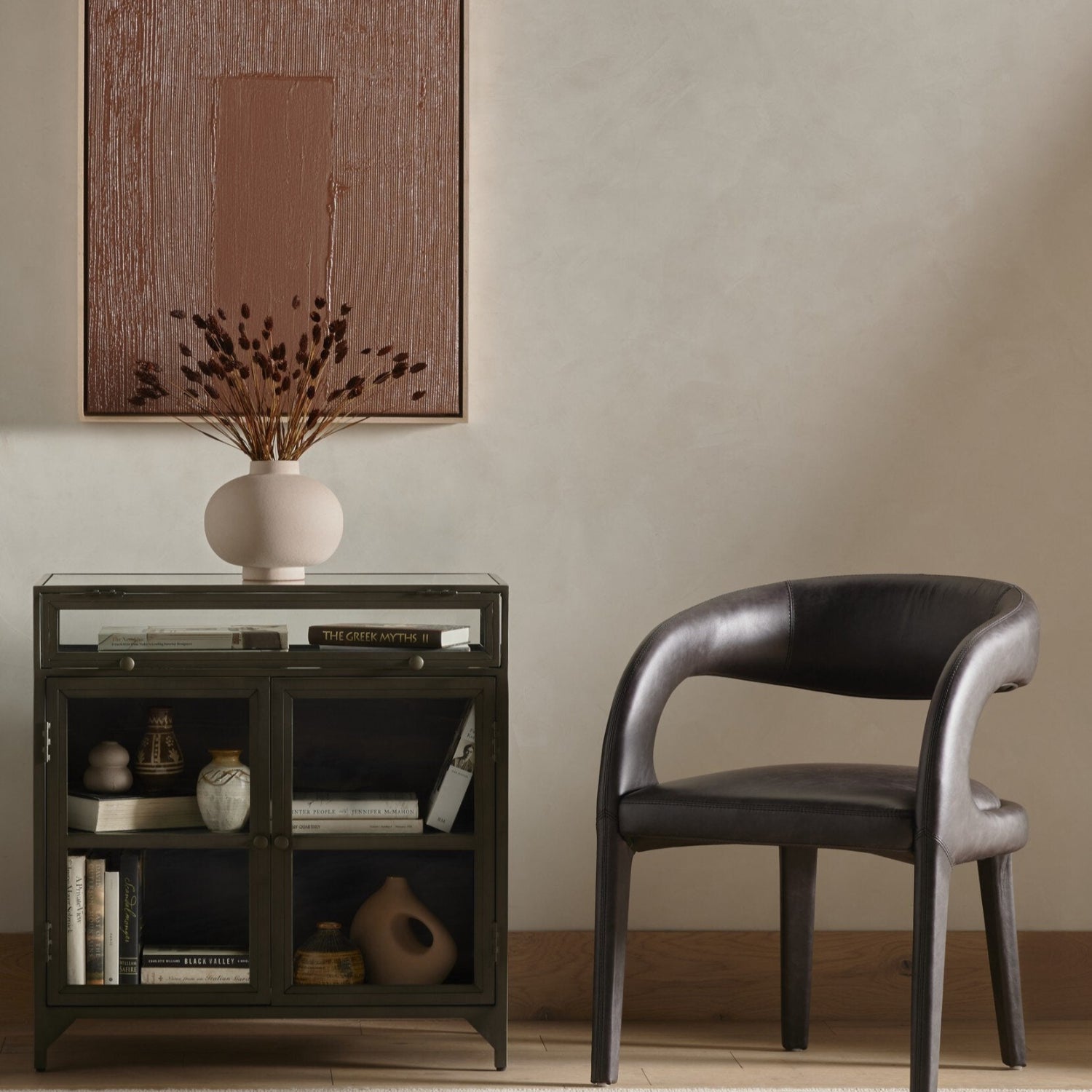 Designed for the modern-minded dining room, this piece can double as a unique accent chair.
