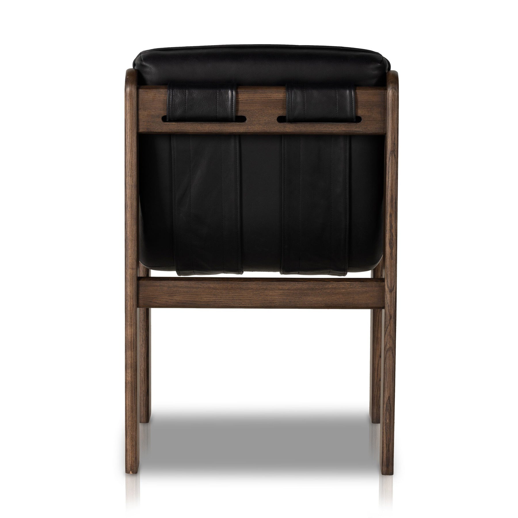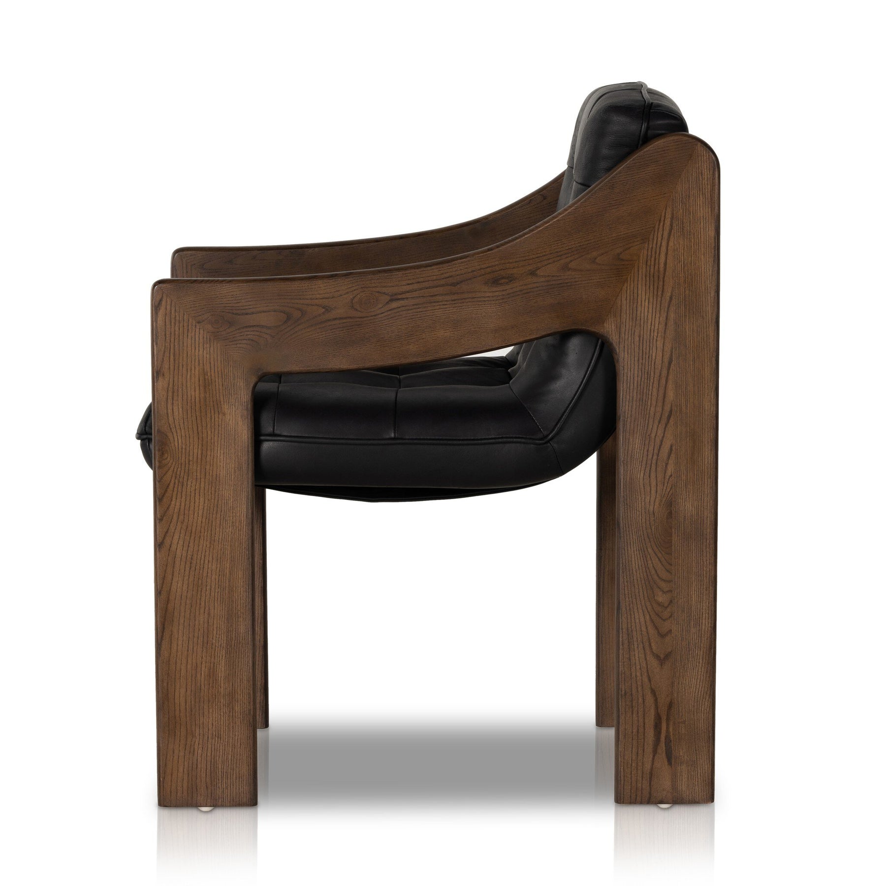 Bring some Brazilian influence to the table. With its sculpted form and inflated scale, brown ash frames black top-grain leather with dramatic tufting for a midcentury twist.