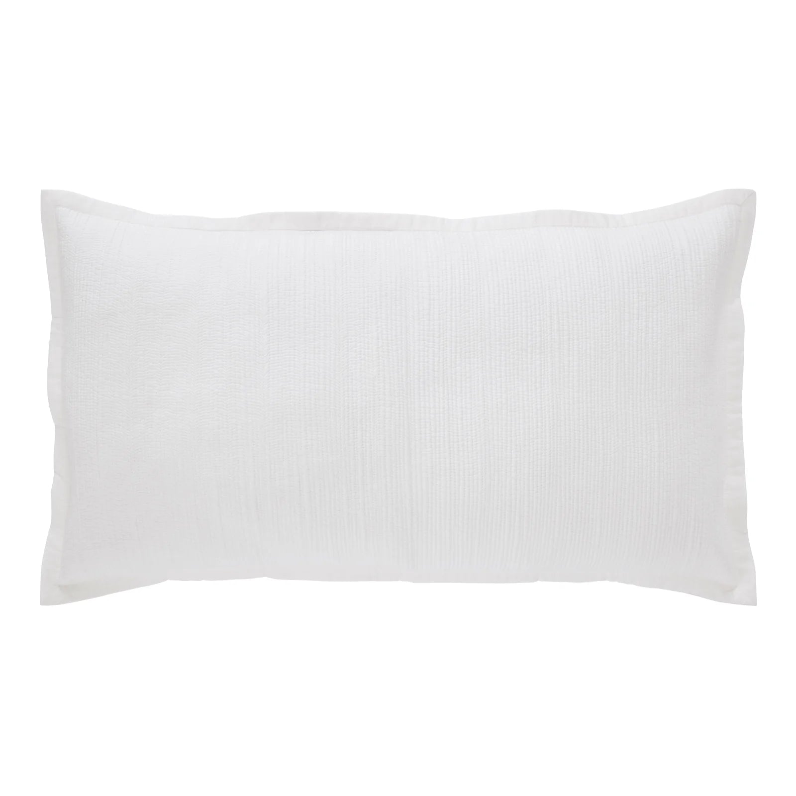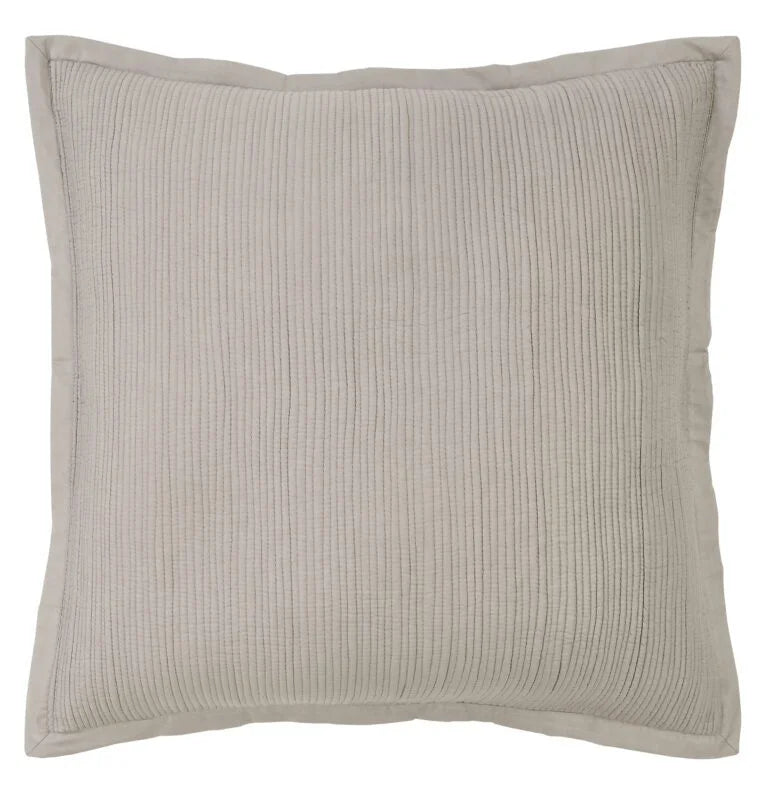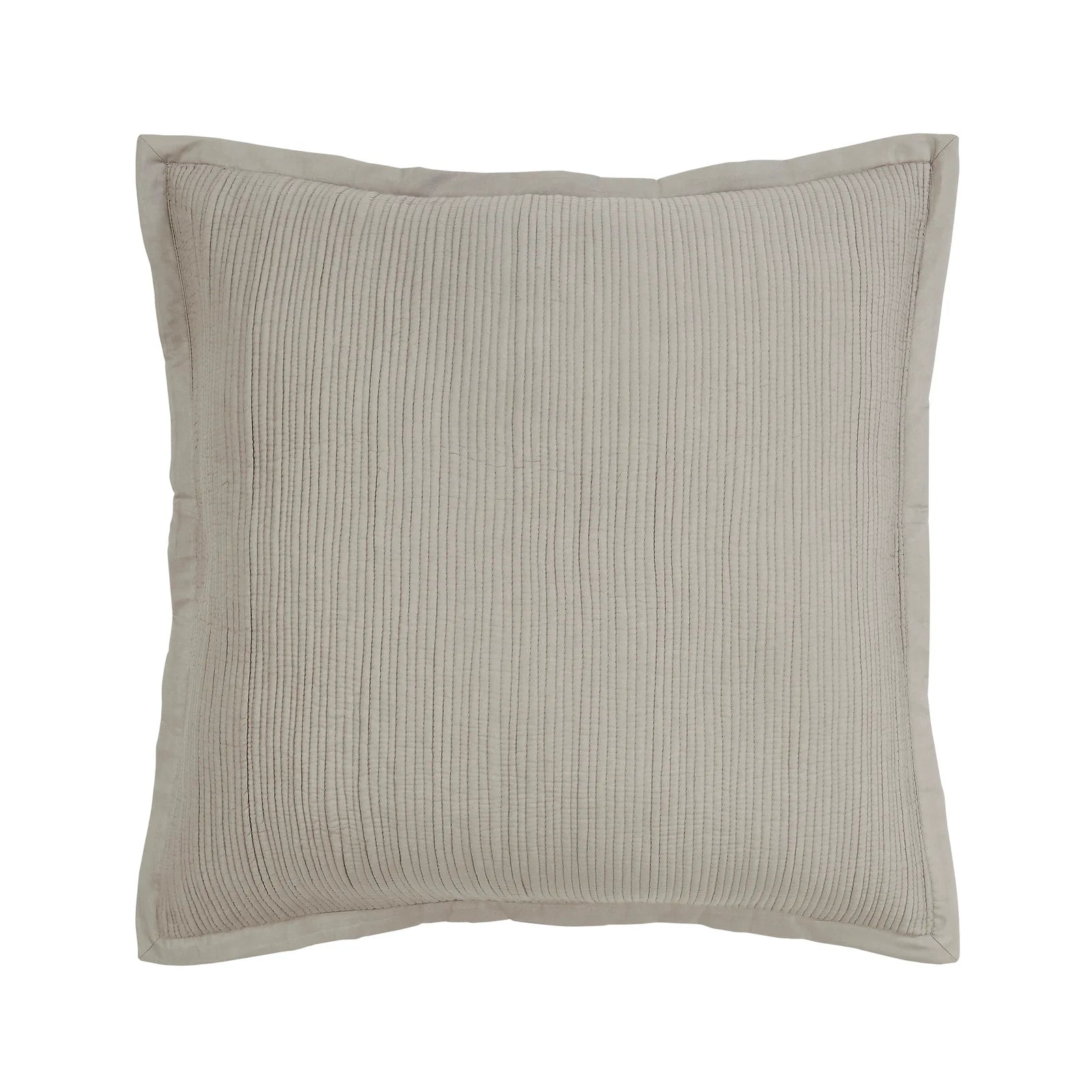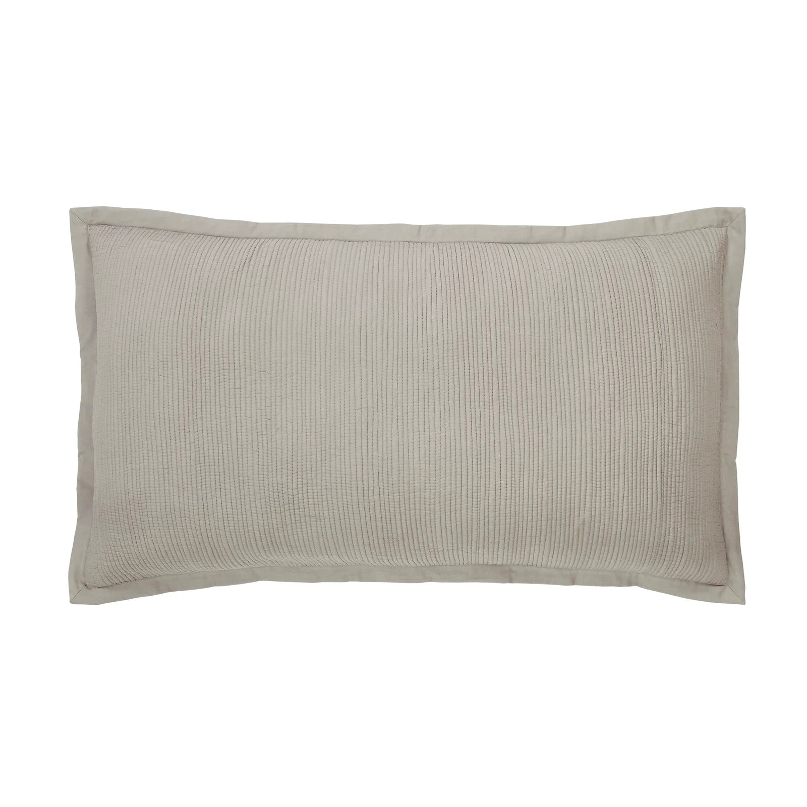 The breezy cotton voile bedding is quilted with lean rows of detailed channel stitching.