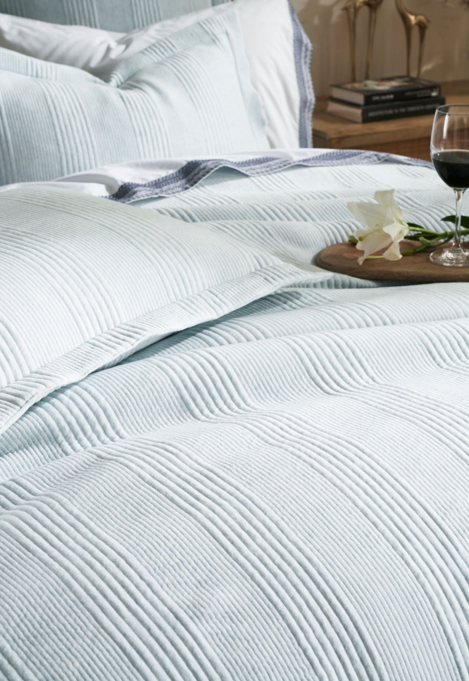 The Savoy Duvet Cover is crafted from high-quality combed, compact, yarn-dyed 100% cotton mélange jersey, providing an unparalleled level of softness. Its ribbed matelassé front adds weight and luxury, while the single jersey backing ensures that it's soft and cozy. You'll love snuggling up in this duvet cover and never want to get out of bed!
