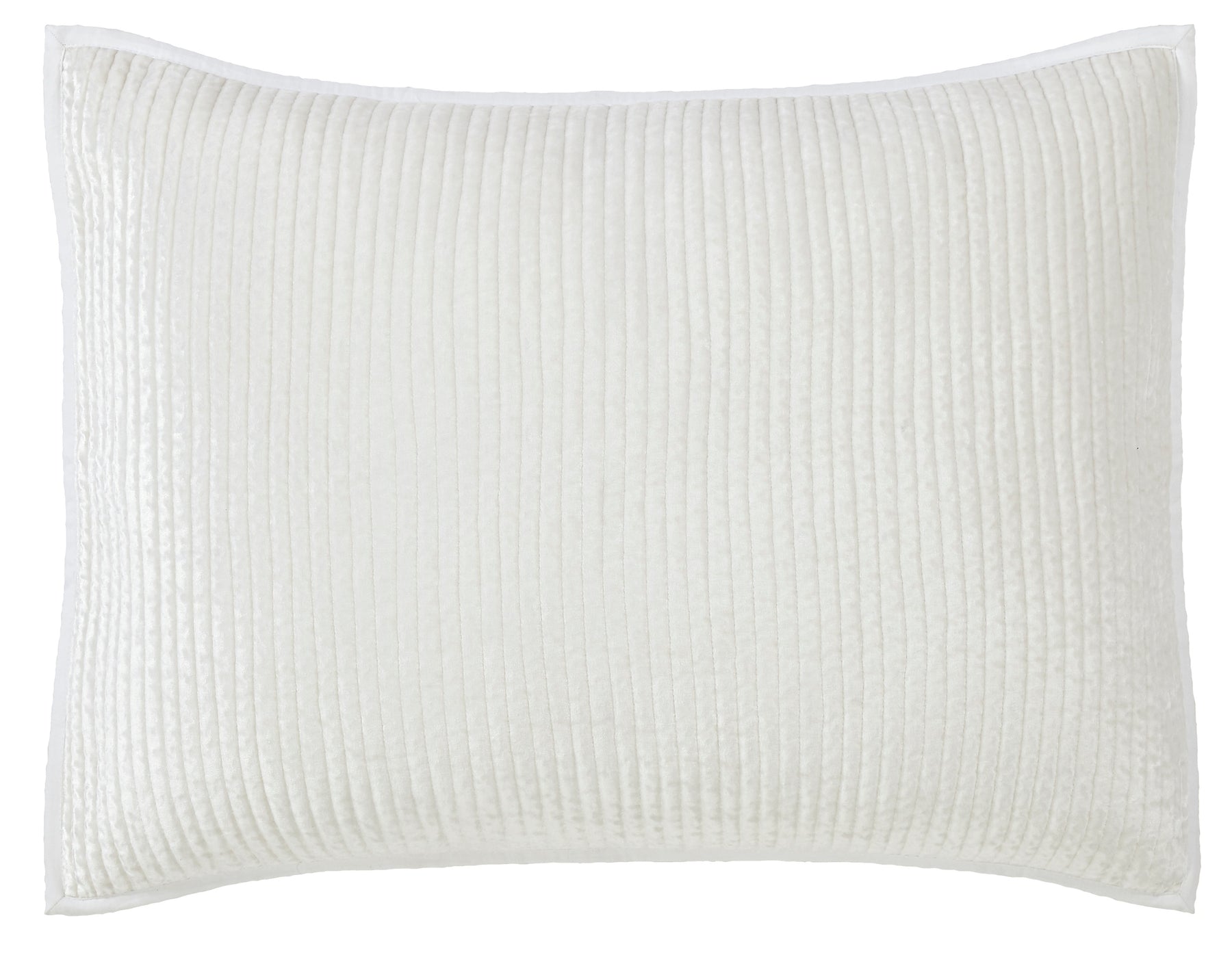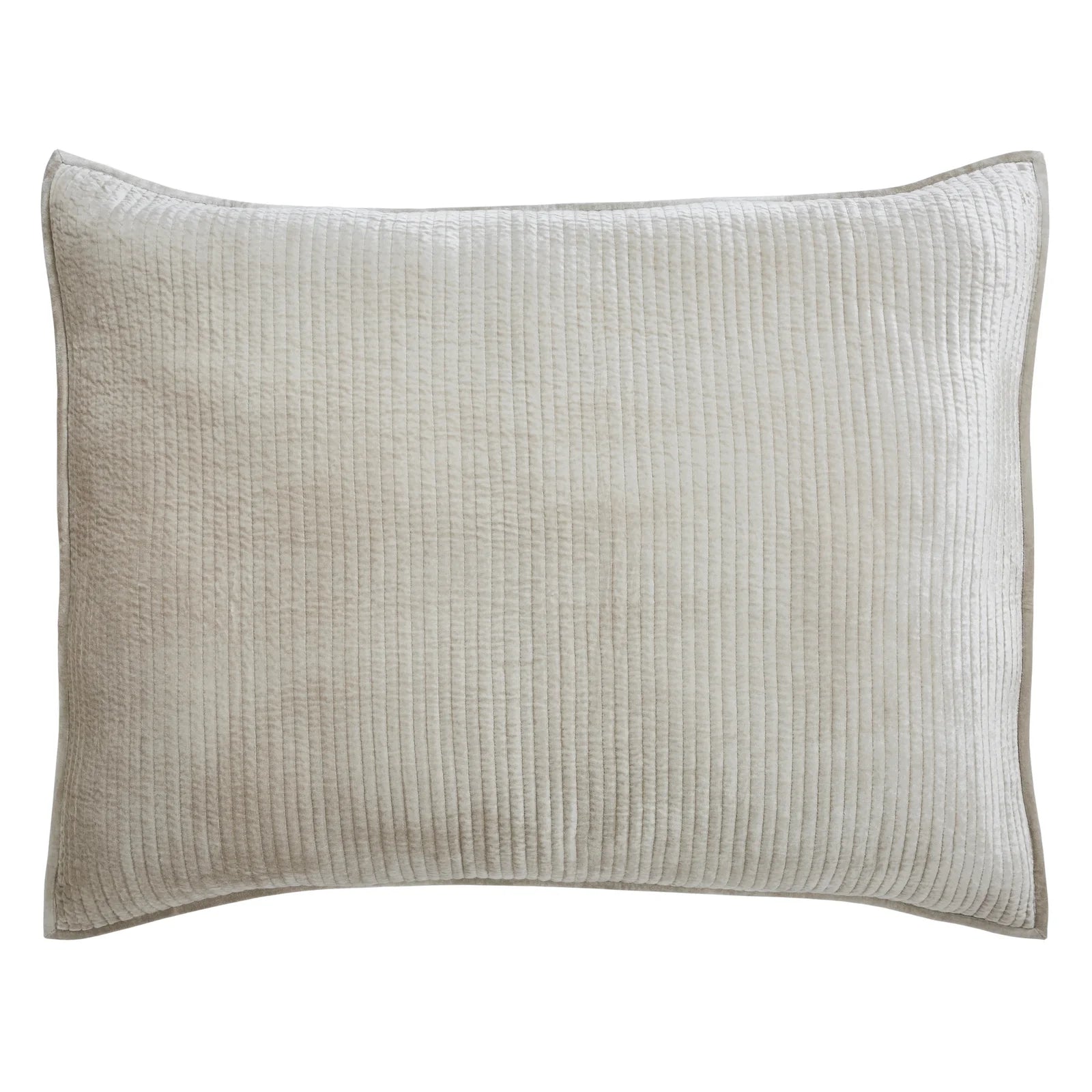 A chic, subtle stripe pattern is created with hand-guided channel-pattern quilting and takes our Cotton viscose velvet bedding to the highest level of plush. The Shams are backed in 300 thread-count Cotton Sateen for a smooth contrast to the velvet’s lustrous finish and luxuriant hand.