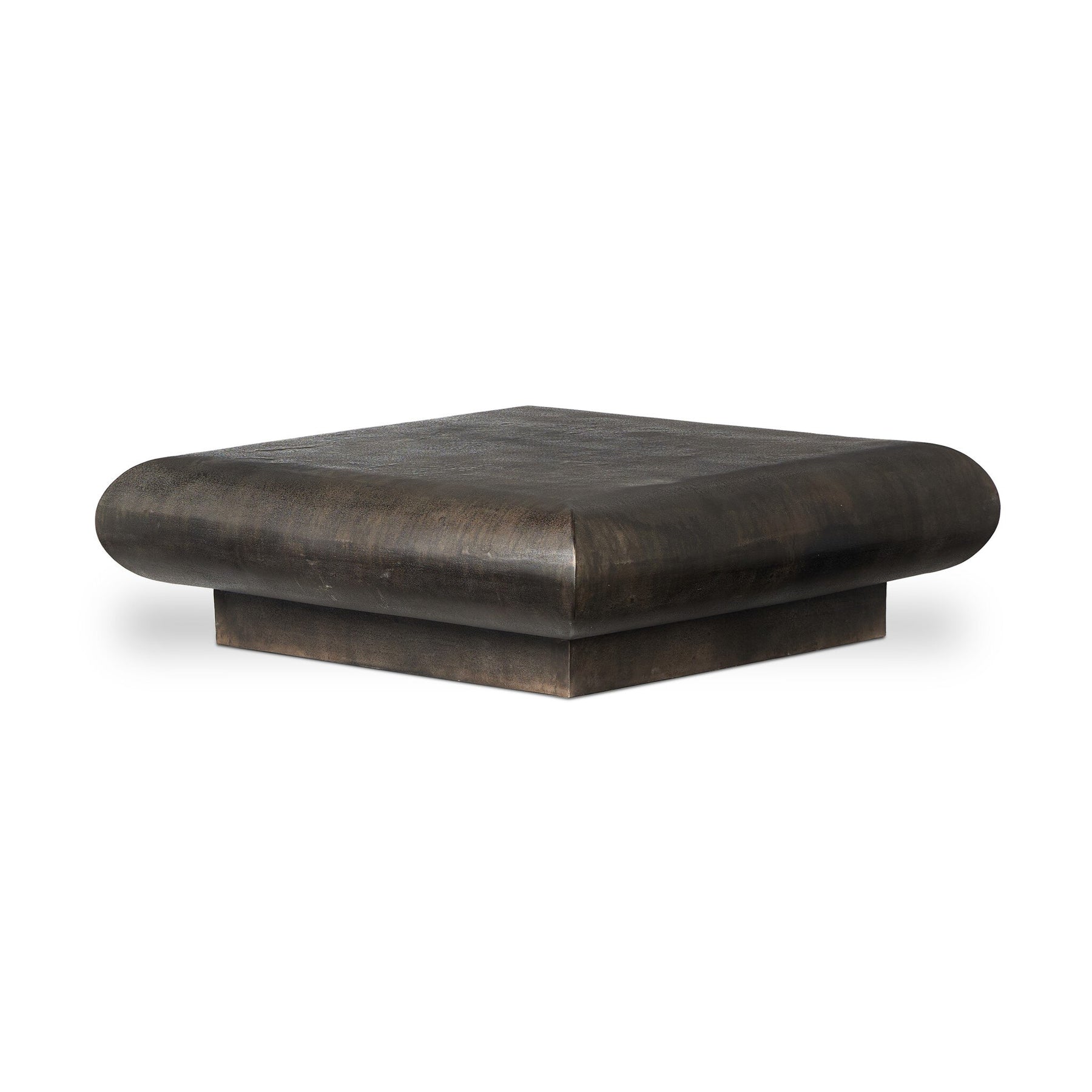 This outdoor coffee table offers a softened square top with a plinth base for the perfect centerpiece for outdoor gatherings.