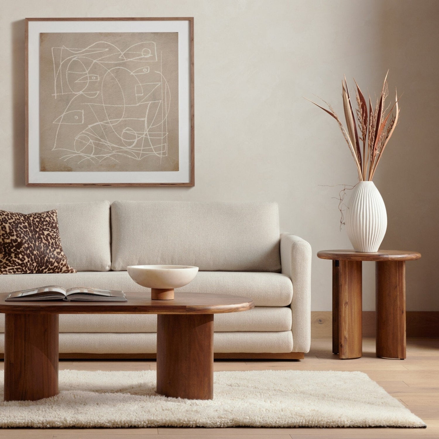 A study in shape. This forms crescent-shaped legs and round tabletop, bringing organic presence to the living room.