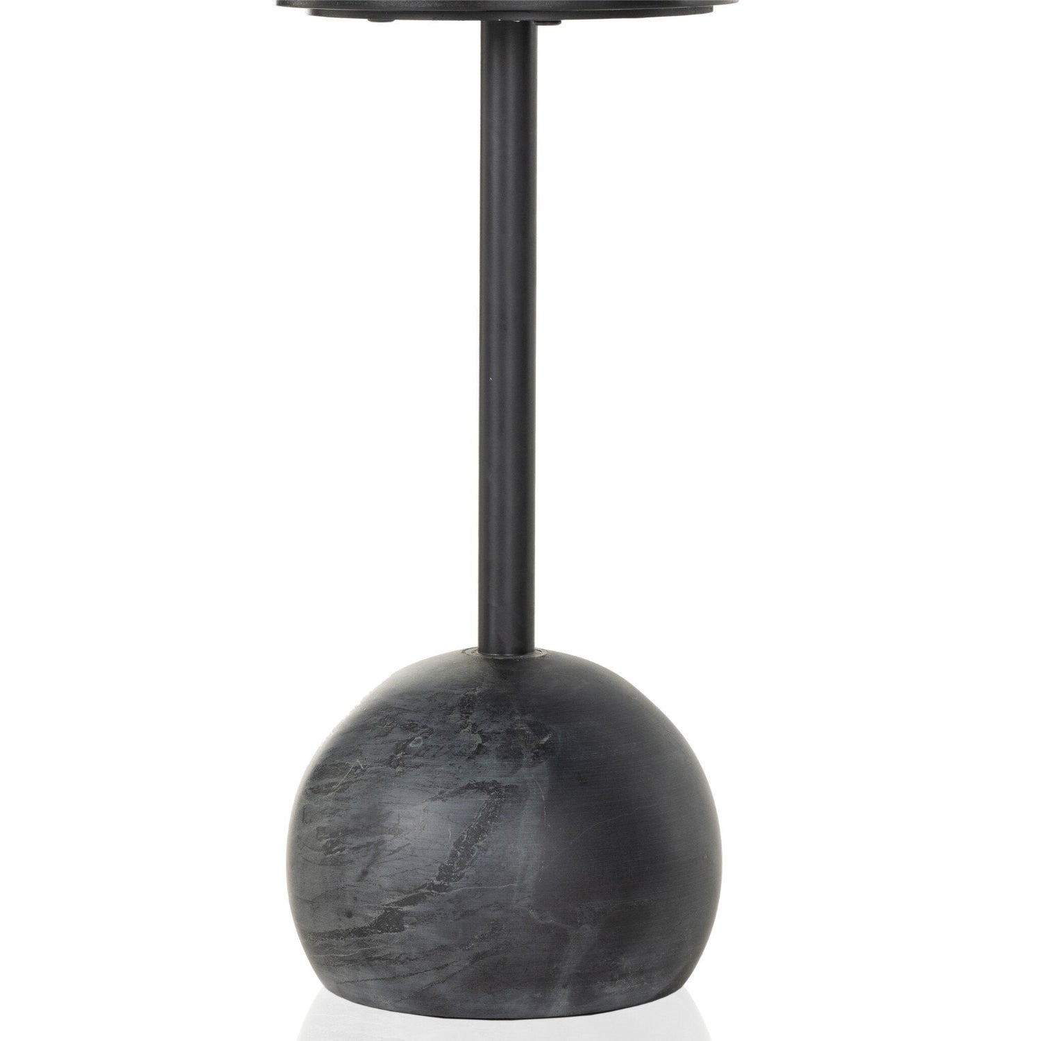 Layer in sophistication anywhere. A dramatically shaped base of white antique marble supports slim iron piping and rounded tray-style tabletop - the perfect place to perch a drink or favorite book.