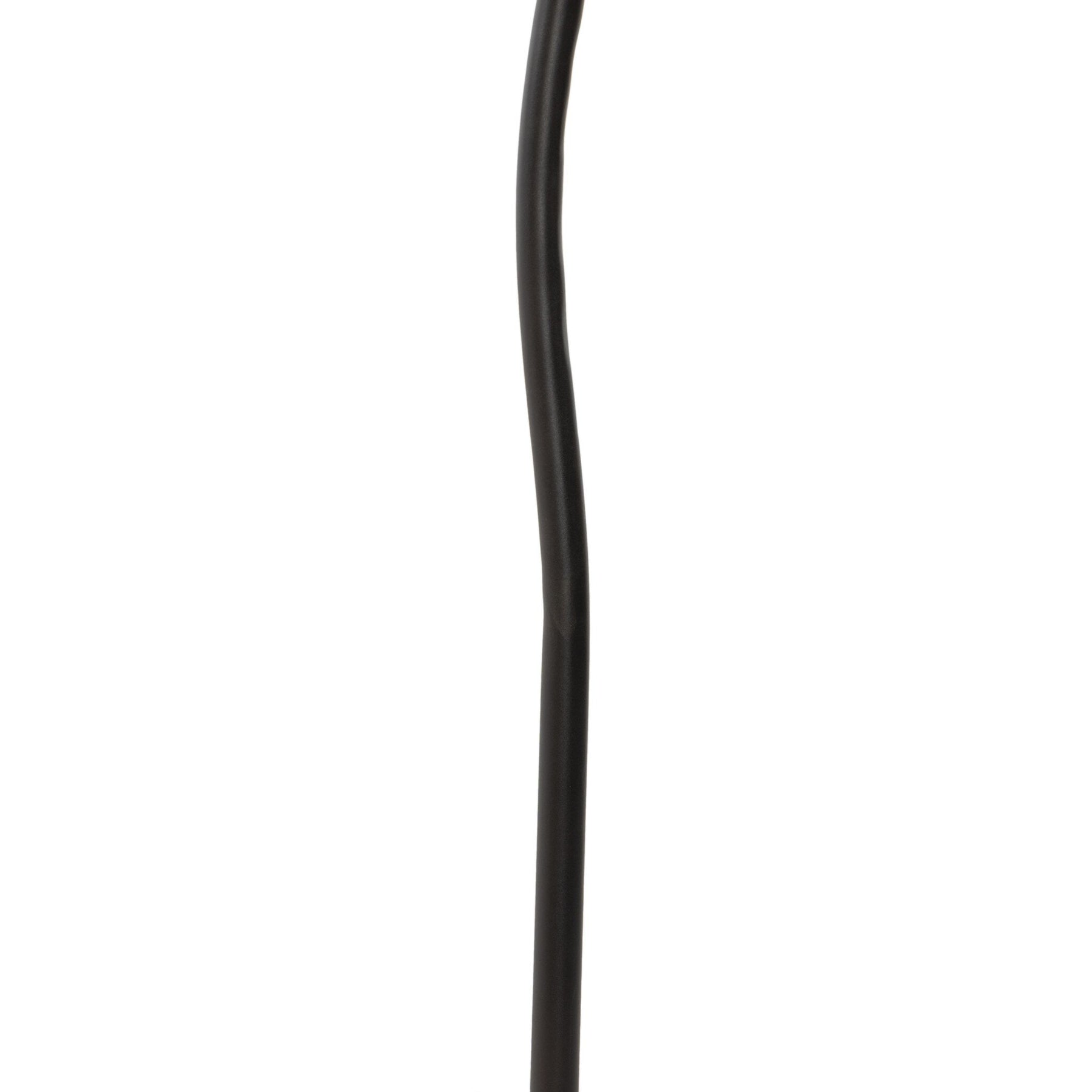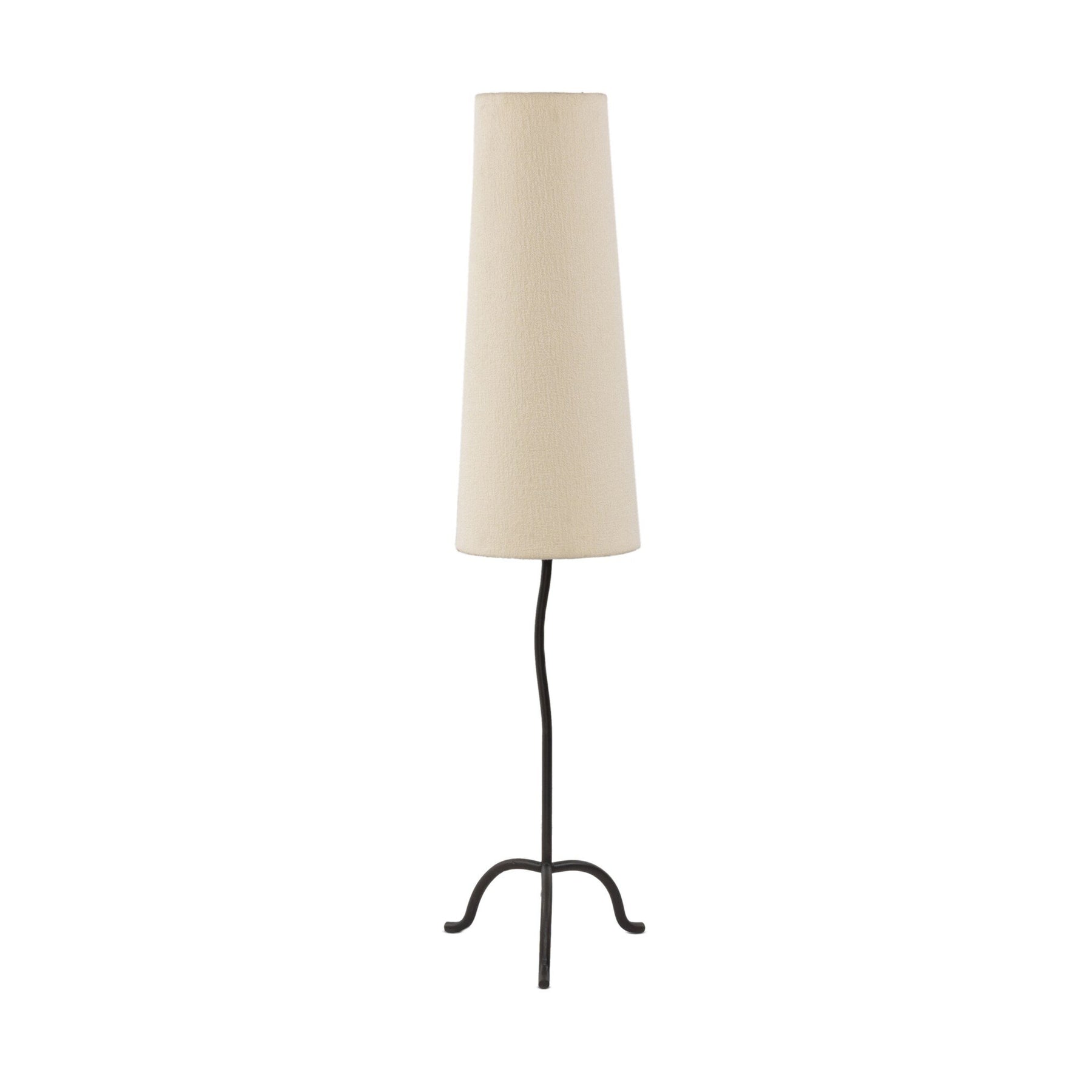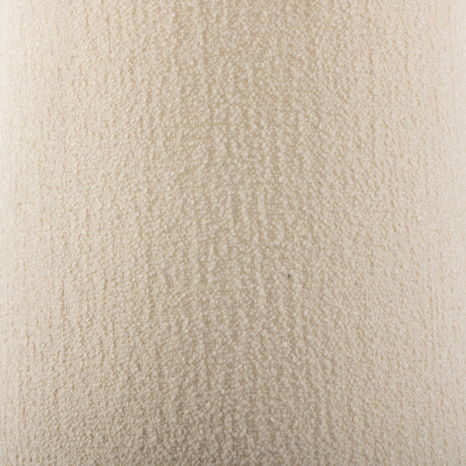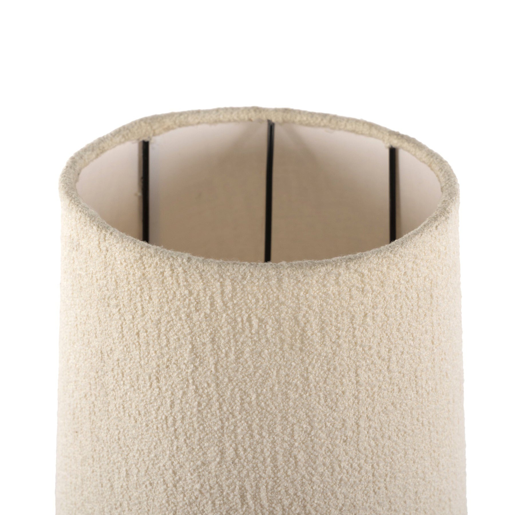 A curved cast iron tripod base pairs with an elongated boucle shade for a sculpted, minimalist look that works into any room with ease.
