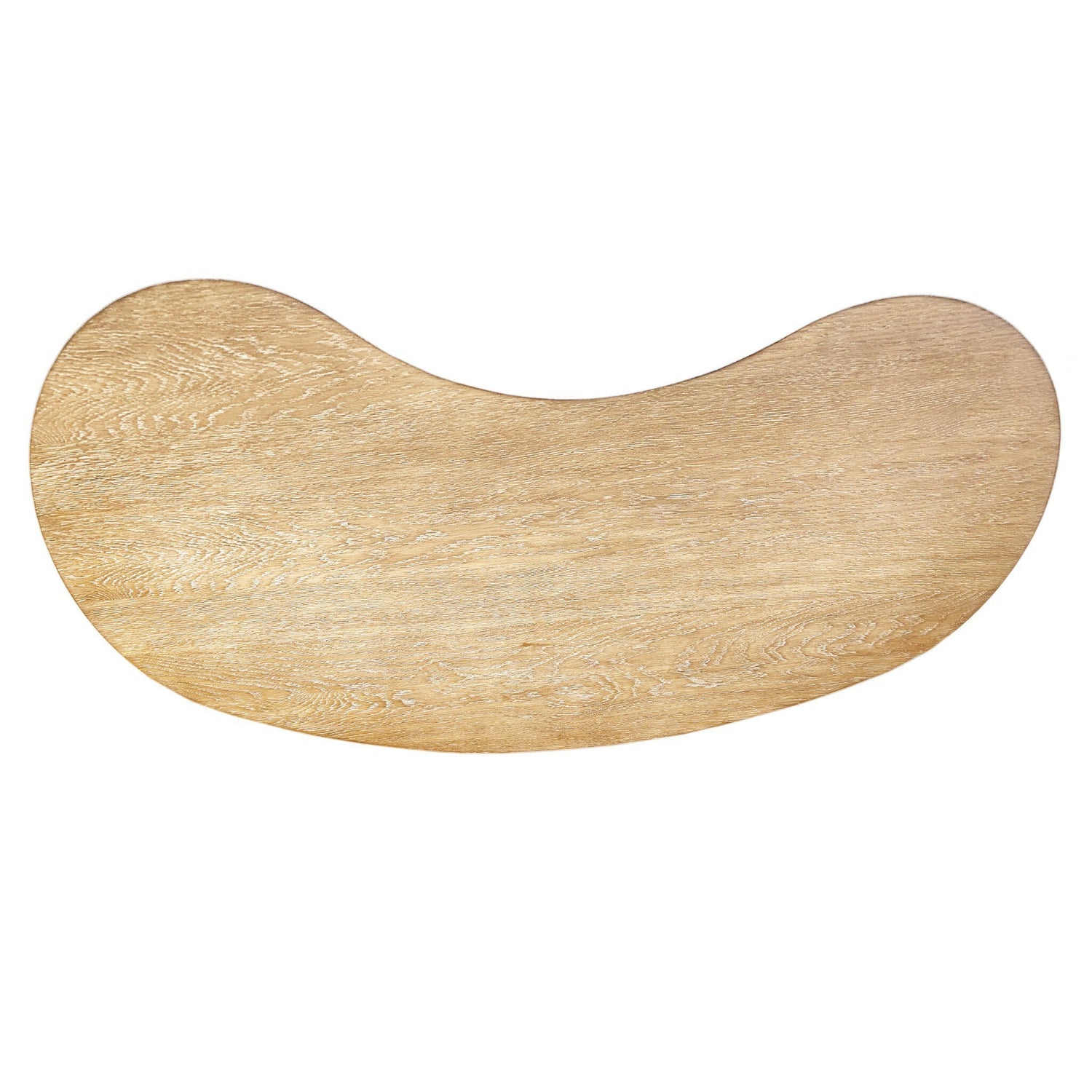 Substantial cylindrical legs support this kidney-shaped desk crafted in oak veneer — a testament to form harmonizing with function.